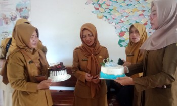 Siswa, Guru dan Tendik SMAN 3 Banyuasin lll memberikan surprise dan hadiah kepada kepala SMAN 3 Ibu Nila Suyanti, M.Pd. yang ber ...